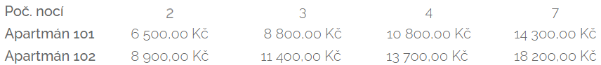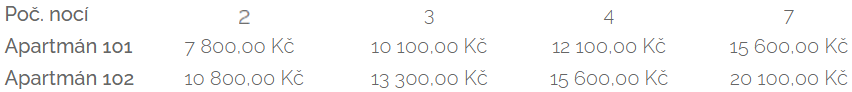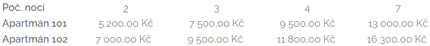 Cena ubytování 16.3.- 30.11.